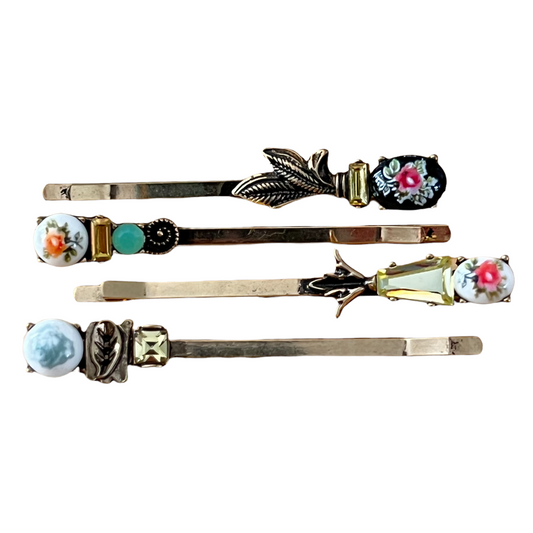 Whimsical Nature Hair Pin Set – Gold Bobby Pins with Bee, Starfish & Clover Charms