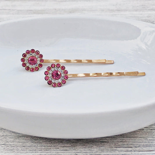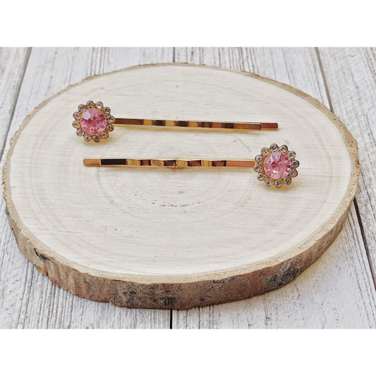 Pink Rhinestone Hair Pins Set of 2 Decorative Bobby Pins