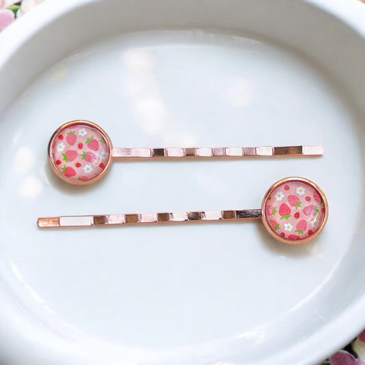 Pink Strawberry Hair Pins – Set of 2 Rose Gold Fruit-Inspired Accessories