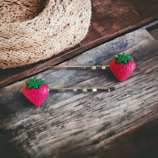 Strawberry Fruit Gold Bobby Pins - Fun & Whimsical Hair Accessories