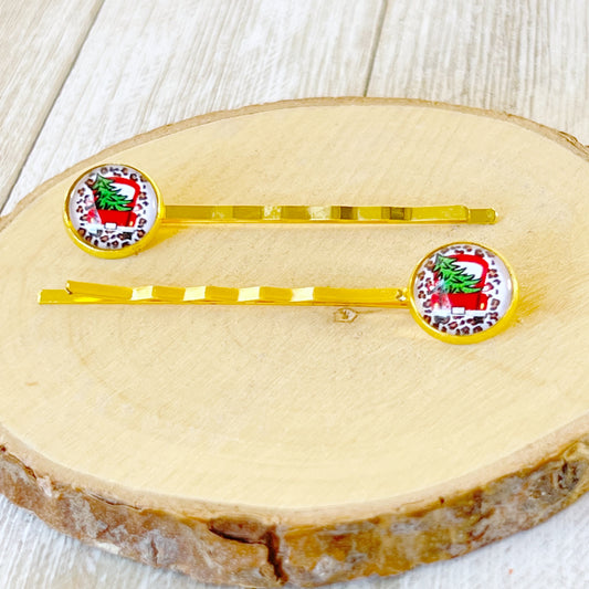 Red Truck Christmas Tree Holiday Bobby Pins - Set of 2 Hair Pins