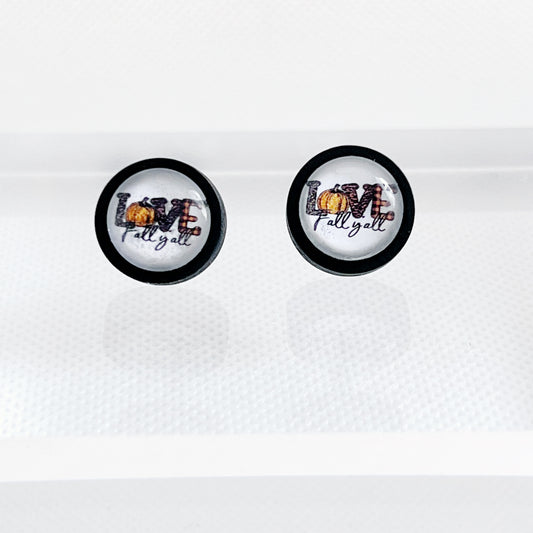 Love Fall Y’all Pumpkin Black Wood Stud Earrings