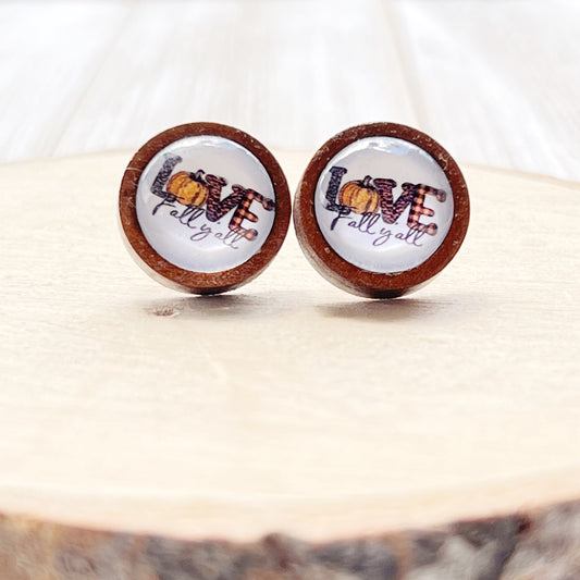 Love Fall Y’all Pumpkin Wood Stud Earrings - Festive & Stylish Accessories