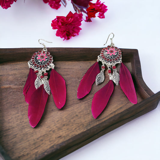 Red Feather Dangle Earrings – Western Boho-Chic Jewelry