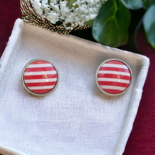 Red & White Striped Unisex Stud Earrings: Bold & Versatile Accessories for Any Outfit