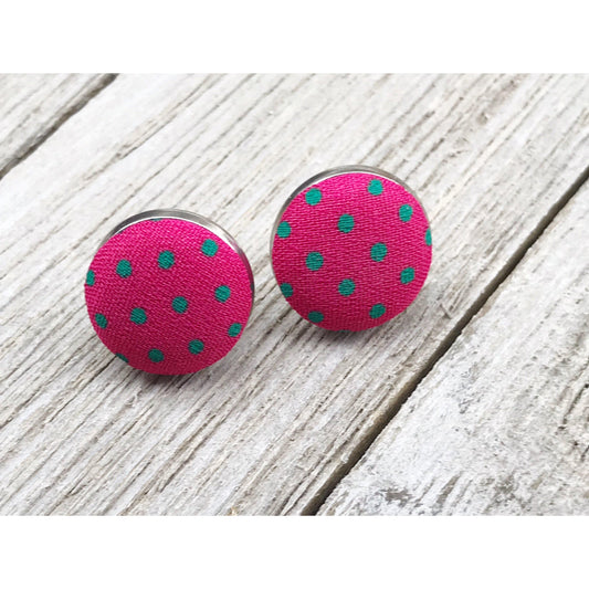 Hot Pink Polka Dot Stud Earrings - Playful & Stylish Accessories