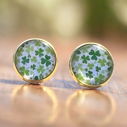 Shamrock Stud Earrings – Handmade Gold-Toned St. Patrick’s Jewelry