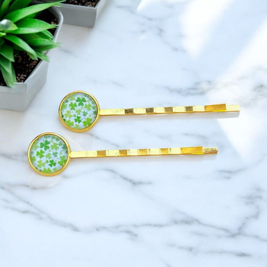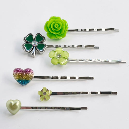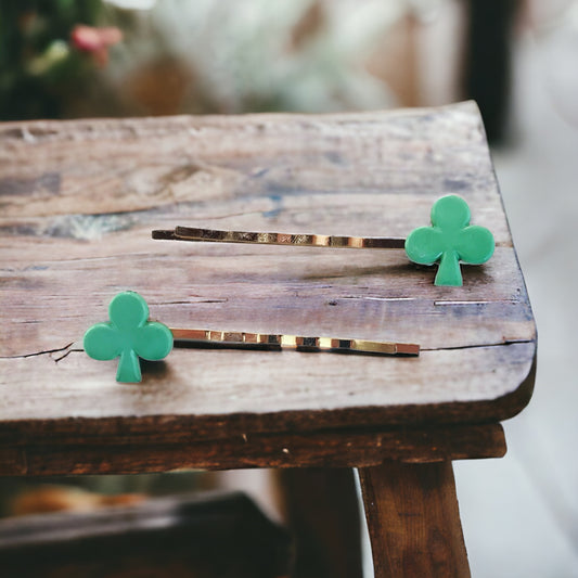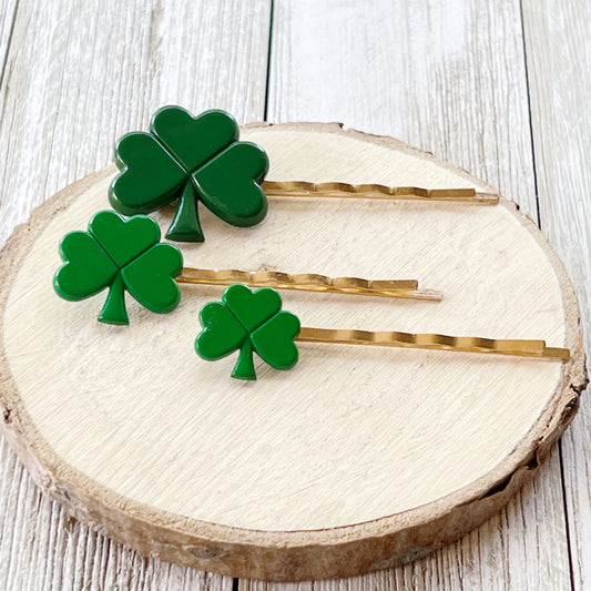 St Patrick’s Day Hair Pins - Clover Green Shamrock Bobby Pin Set of 3