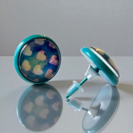 Galaxy Heart Stud Earrings – Whimsical Handmade Jewelry in Teal