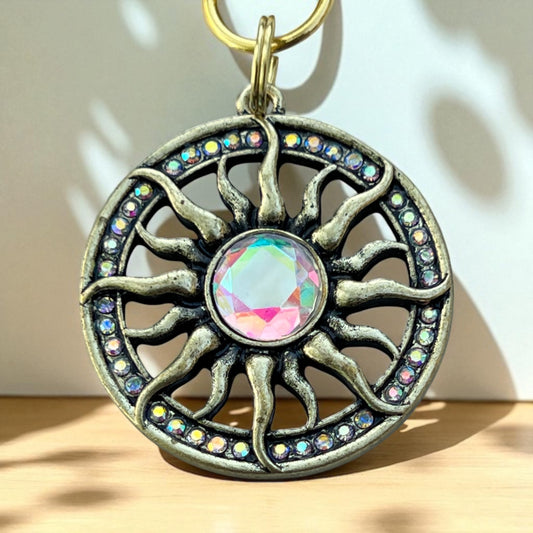 Sun Purse Charm – Radiant Boho Keychain with Iridescent Center