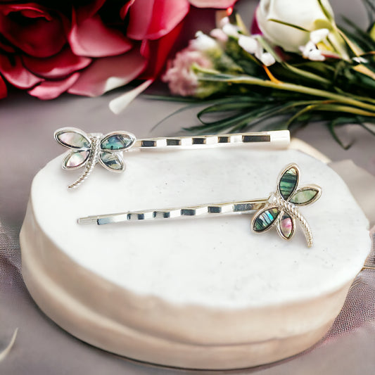 Abalone Dragonfly Hair Pin Set – Natural Shell Bobby Pins for Women