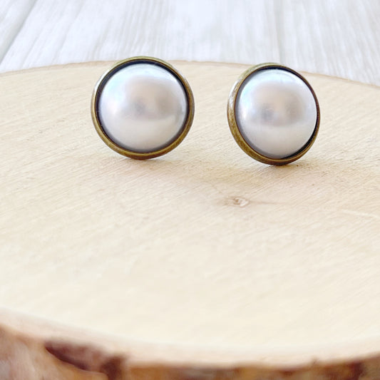 Silver White Pearl Earrings Studs 12mm