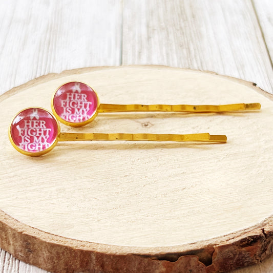 Her Fight is My Fight Breast Cancer Awareness Month Pink Ribbon Hair Pins