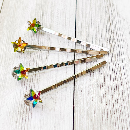 Rainbow Star Hair Pins Set of 4 Rhinestone Bobby Pins