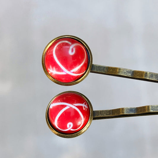 Red and White Heart Hair Pins - Romantic Bobby Pin Set