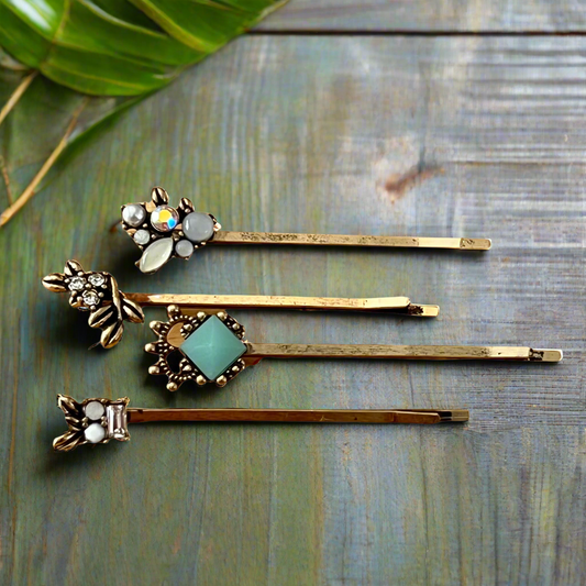 Gold Gemstone Hair Pins – Set of 4 Elegant Accessories