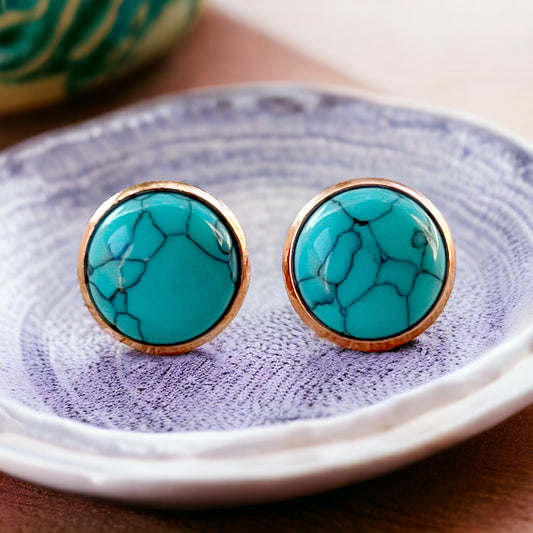 Turquoise Rose Gold Stud Earrings: Boho Western Charm for Unique Style Statements