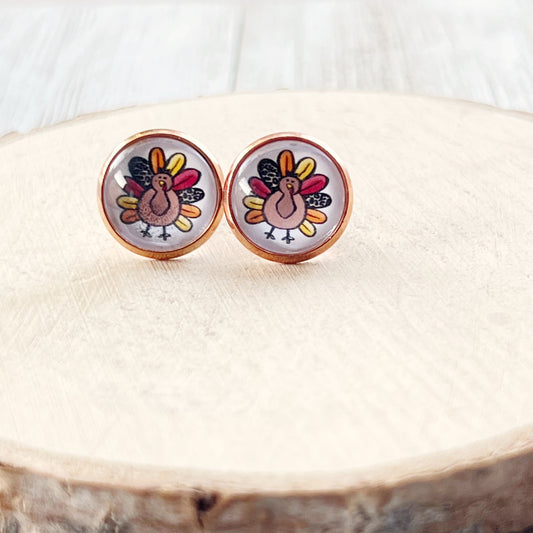 Thanksgiving Turkey Rose Gold Stainless Steel Stud Earring
