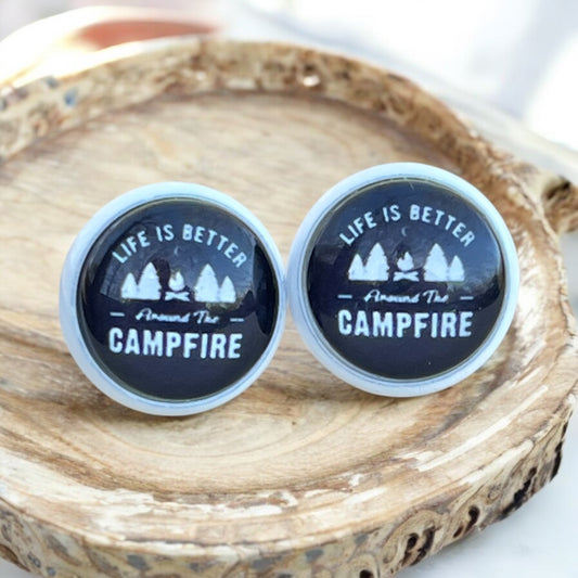 Life Is Better Around the Campfire Stud Earrings – Handmade Gift