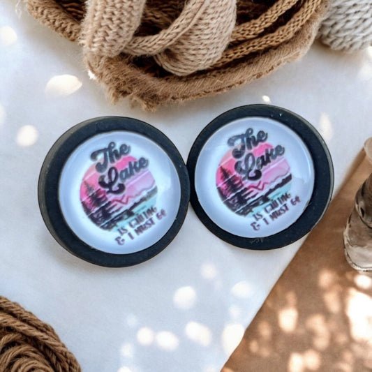 Lake Quote Stud Earrings – Handmade Black Wood Jewelry for Her