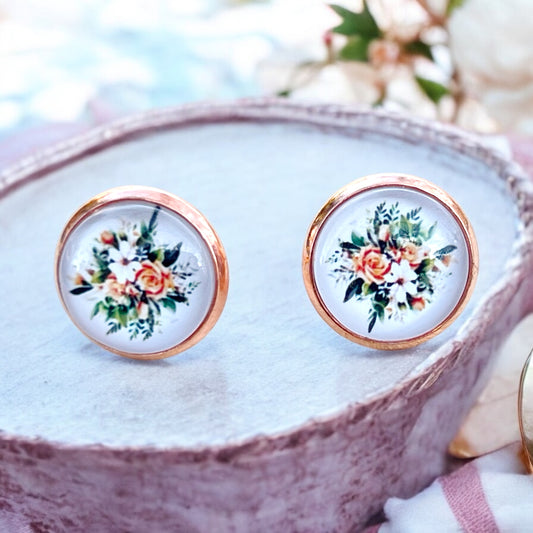Rose Gold Floral Stud Earrings – Handmade Vintage Cottagecore Jewelry