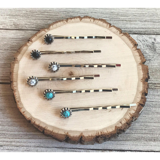 Black, White & Turquoise Stone Hair Pins - Set of 6 Western Cowgirl Bobby Pins