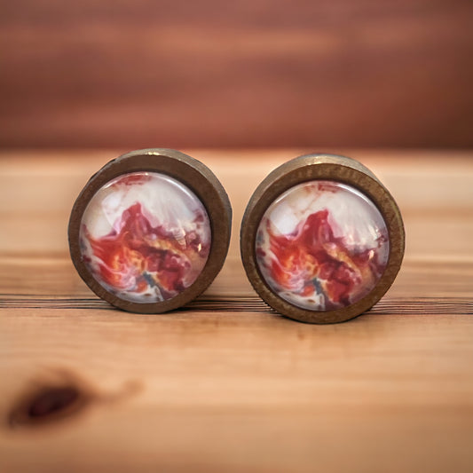 Crimson Marble Resin Stud Earrings – Earthy Artisan Jewelry