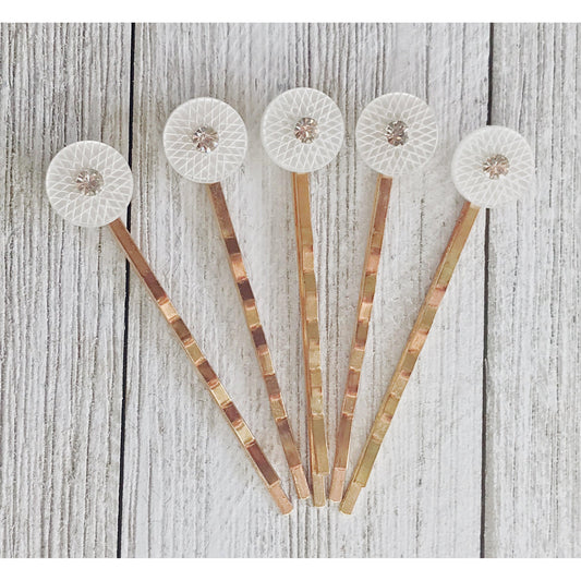 White Geometric Hair Pins - Set of 5 Elegant Rhinestone Bobby Pins