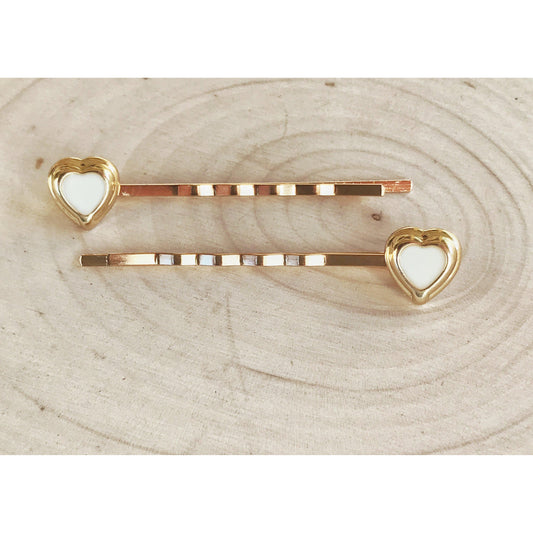 White & Gold Heart Hair Pins - Elegant Romantic Bobby Pins