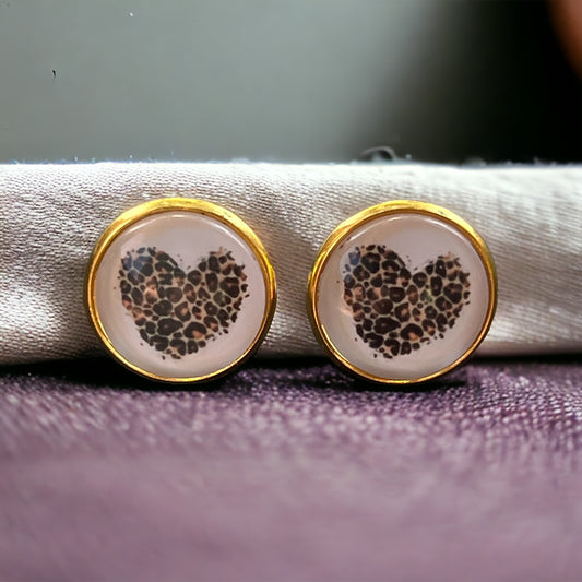 Leopard Heart Stud Earrings – Gold Wild & Playful Jewelry