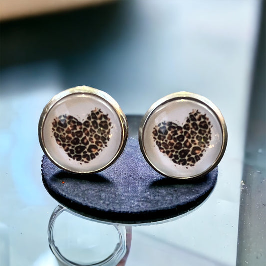 Leopard Print Heart Stud Earrings – Silver Statement Jewelry