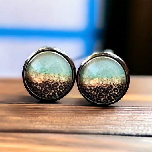 Mint Leopard Ombre Stud Earrings – Bold Boho Jewelry