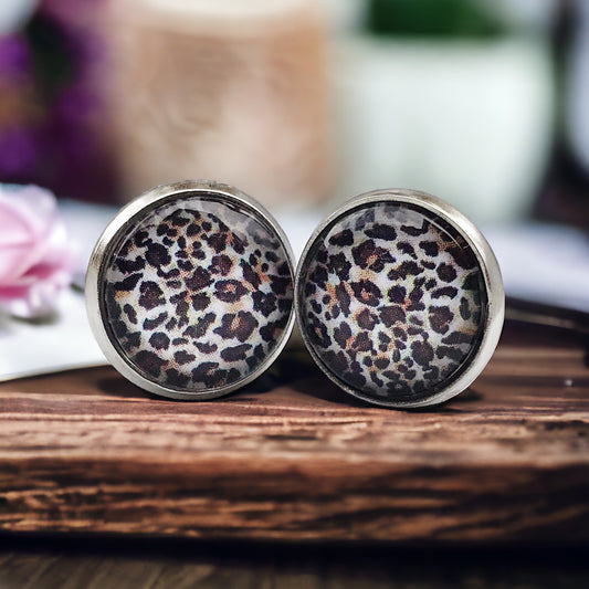 Cheetah Print Stud Earrings – Handmade 12mm Glass Cabochon Jewelry