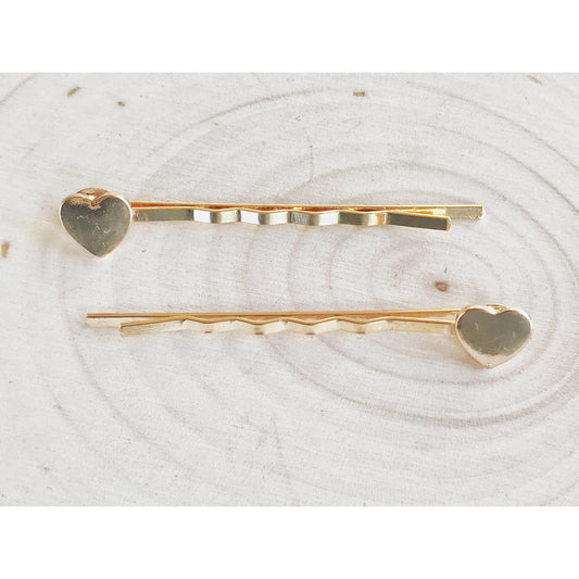 Dainty Gold Heart Hair Pins - Romantic Bobby Pin Set of 2