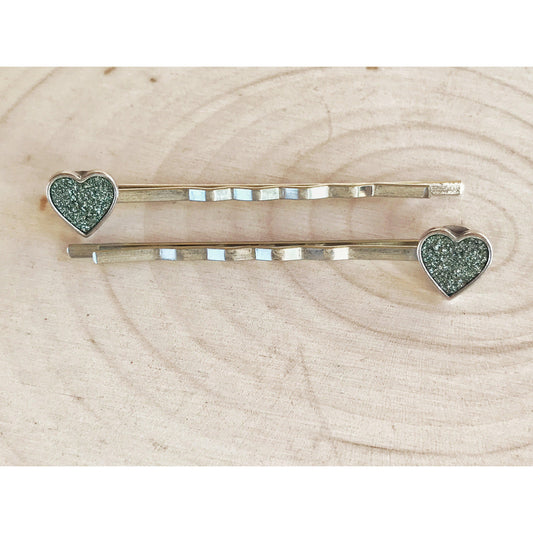 Tiny Green Glitter Heart Hair Pins - Delicate Sparkling Accessories