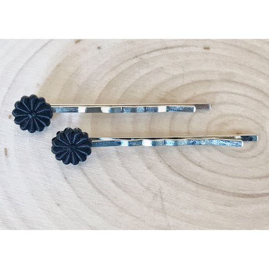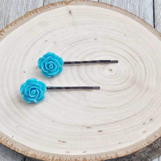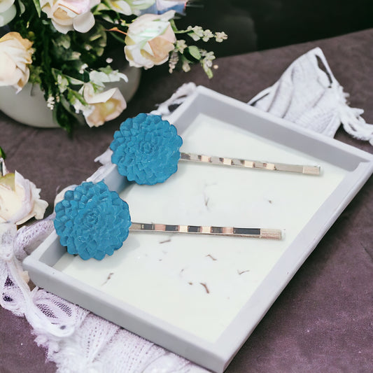 Blue Flower Hair Pins - Elegant Bridal Bobby Pin Set of 2