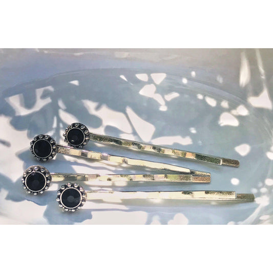 Boho Black Gemstone Hair Pins Set of 4 - Western-Inspired Hair Accessories