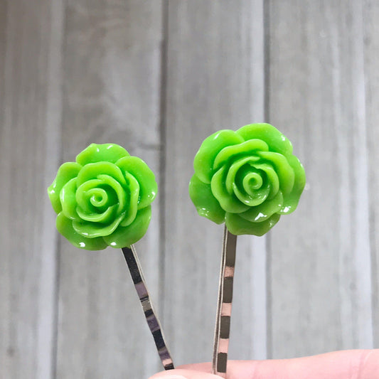 Bright Green Flower Hair Pin - Wedding Hair Jewelry | Floral Bobby Pin Bridal Hair Accessory