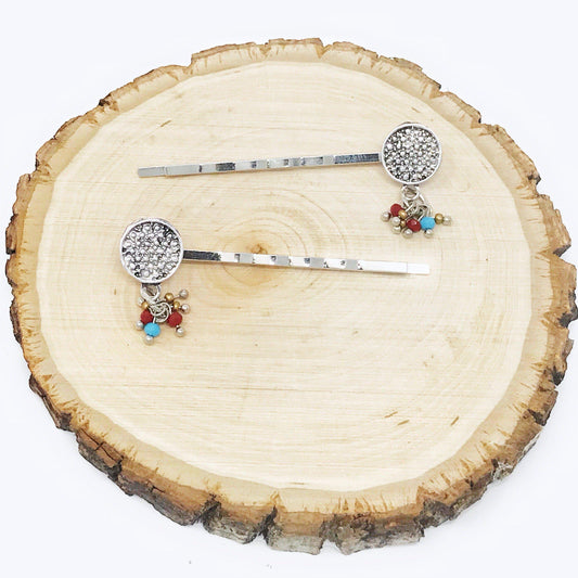 Medallion Hair Pins with Beaded Accents - Western Bobby Pins
