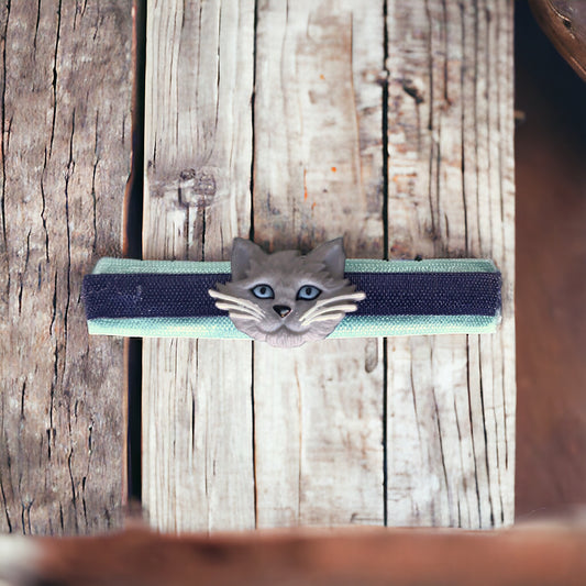 Gray Cat with Blue Hair Clip - Adorable Feline-Inspired Accessory