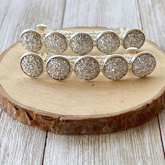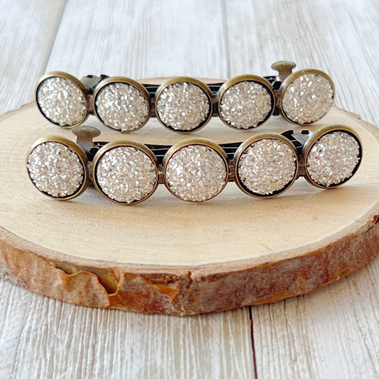 Metallic Silver Druzy Barrettes - Stylish & Elegant Hair Accessories