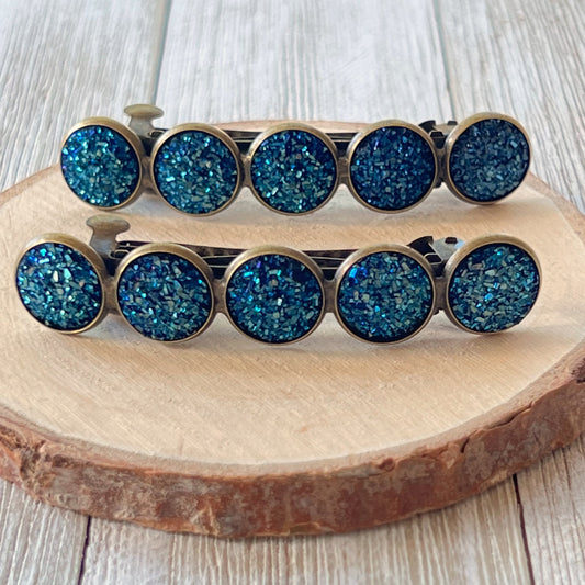 Cobalt Blue Druzy Hair Clips