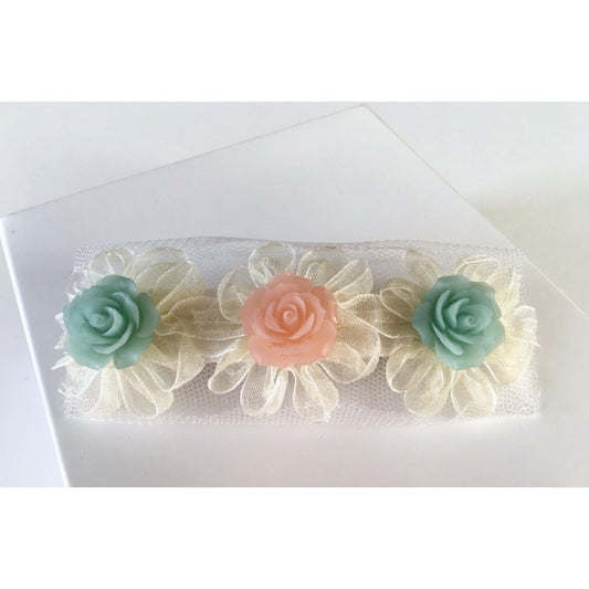 Pink & Mint Rose Hair Clip - Charming Floral Accessory