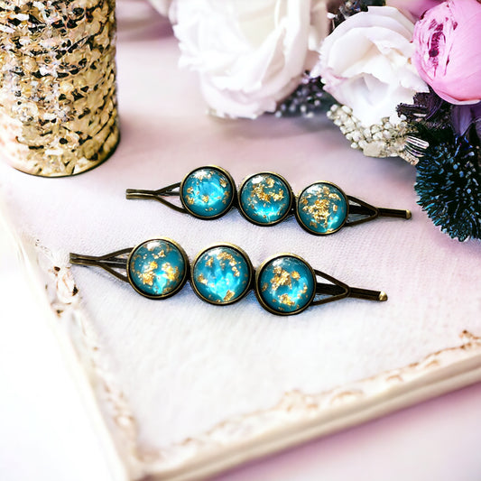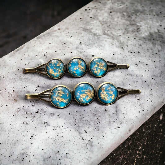Turquoise & Gold Foil Hair Pins – Set of 2 Celestial Accessories