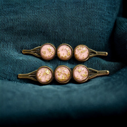 Pink & Gold Foil Hair Pins – Romantic Resin Clip Set of 2