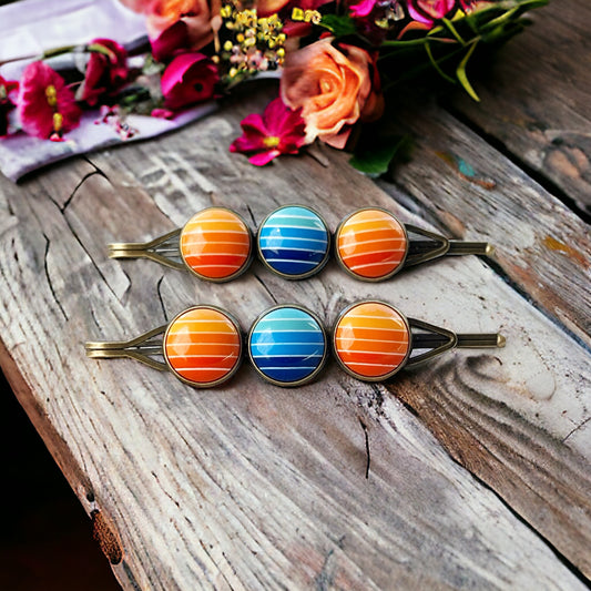 Orange & Blue Gradient Striped Hair Pins: Vibrant Accessories for Stylish Hairdos