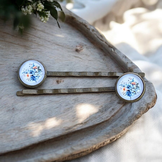 Blue Floral Hair Pins – Set of 2 Vintage Cottagecore Accessories