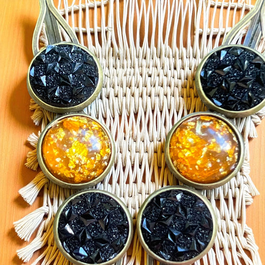 Fall Hair Pin Set – Amber & Black Crystal Handmade Bobby Pins