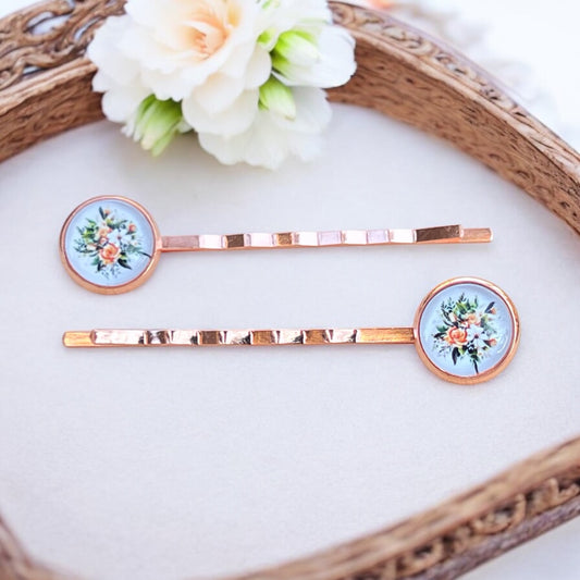 Rose Gold Floral Hair Pins – Set of 2 Vintage Cottagecore Accessories