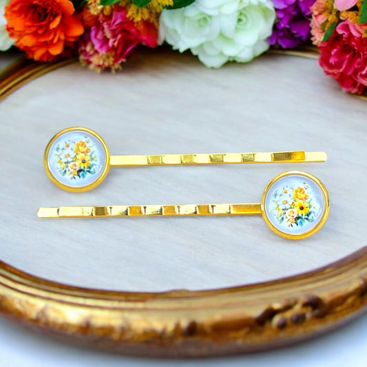 Vintage Floral Hair Pins – Set of 2 Gold Cottagecore Accessories